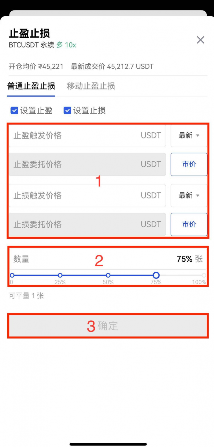 1.交易页面设置止盈止损